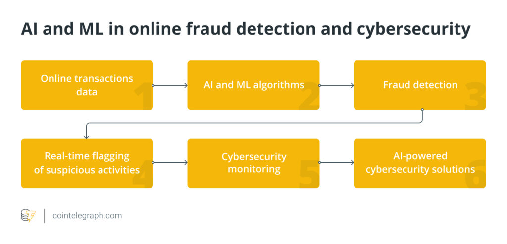 ИИ и ML играют решающую роль в выявлении мошенничества в Интернете, где алгоритмы обнаруживают мошеннические действия в онлайн-транзакциях, таких как кредитные карты, онлайн-банкинг или транзакции электронной коммерции. Эти алгоритмы могут применяться в режиме реального времени для выявления и пометки подозрительных действий.