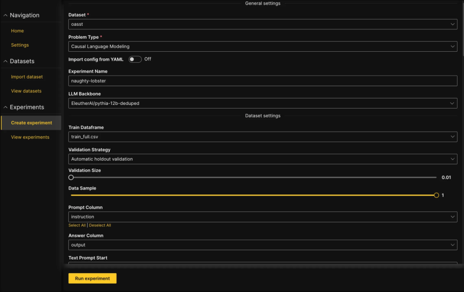 Как объясняет H2O, LLM Studio без кода предоставляет предприятиям среду точной настройки, в которой пользователи могут просто зайти, выбрать из полностью разрешенного, коммерчески используемого кода, данных и моделей — от 7 до 20 миллиардов параметров, 512 токенов — и начать создавать GPT для своих нужд.