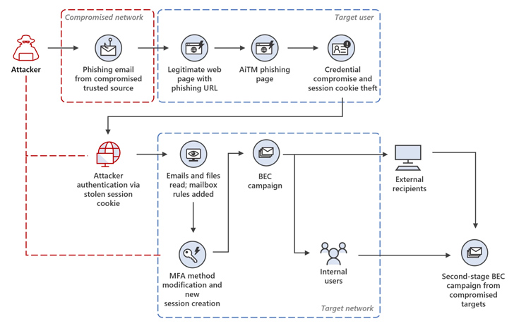 «Атака исходила от скомпрометированного надежного поставщика и перешла в серию атак AiTM и последующей деятельности BEC, охватывающей несколько организаций», — раскрыл технический гигант в отчете за четверг.