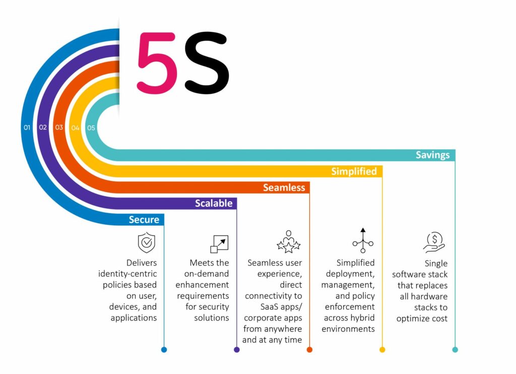 Современные организации нуждаются в молниеносном доступе к частным приложениям для повышения производительности. ZTNA поддерживают детализированный контекстно-зависимый доступ для пользователей и рабочих нагрузок внутри сети организации или в нескольких облаках. Предоставляемое в облаке решение для службы безопасного доступа Edge (SASE) объединяет службы безопасности и сетевые службы с программно-определяемым периметром для обеспечения видимости и масштабируемости. Это позволяет организациям с большей легкостью внедрять ZTNA.