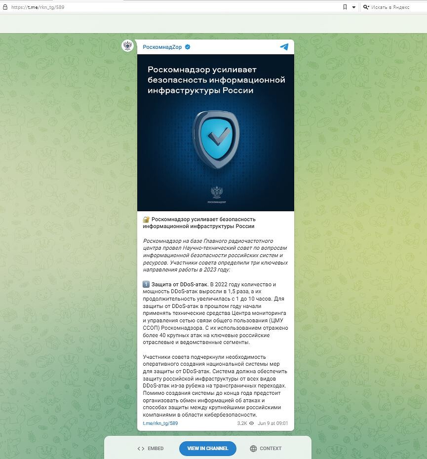 По данным регулятора, в 2022 г. DDoS-атак выросли в полтора раза год к году как по количеству, так и по мощности, а по продолжительности – и вовсе в десять раз. Участники созванного РКН совета «подчеркнули необходимость оперативного создания национальной системы мер для защиты от DDoS-атак».