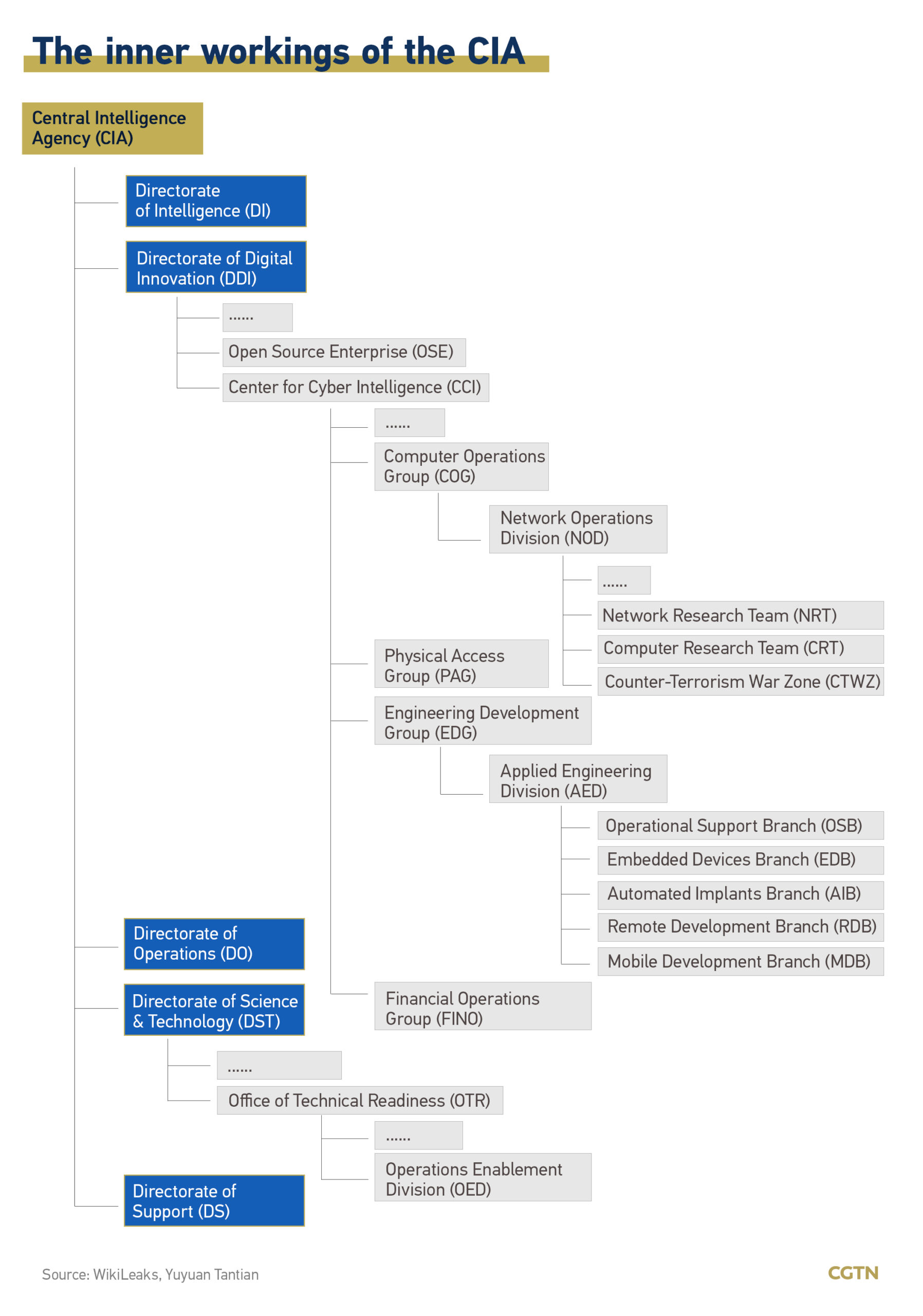 У ЦРУ сложная внутренняя работа. По данным WikiLeaks, к концу 2016 года в хакерском подразделении ЦРУ – Центре киберразведки — насчитывалось уже более 5000 хакеров, создавших более тысячи хакерских систем, троянов, вирусов и других вредоносных программ «военного назначения».