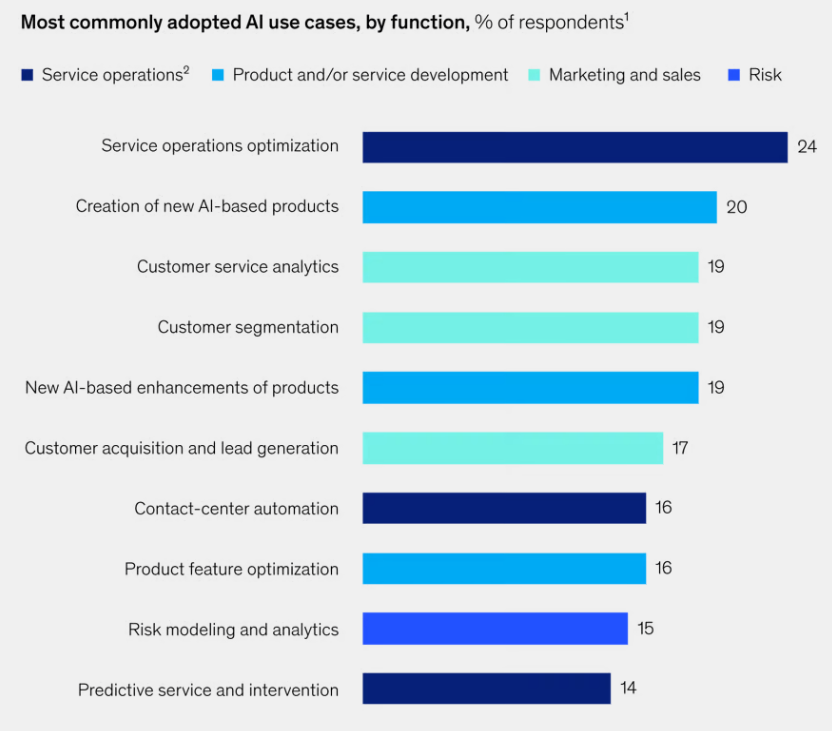 Глобальный обзор McKinsey по ИИ проливает некоторый свет на это.