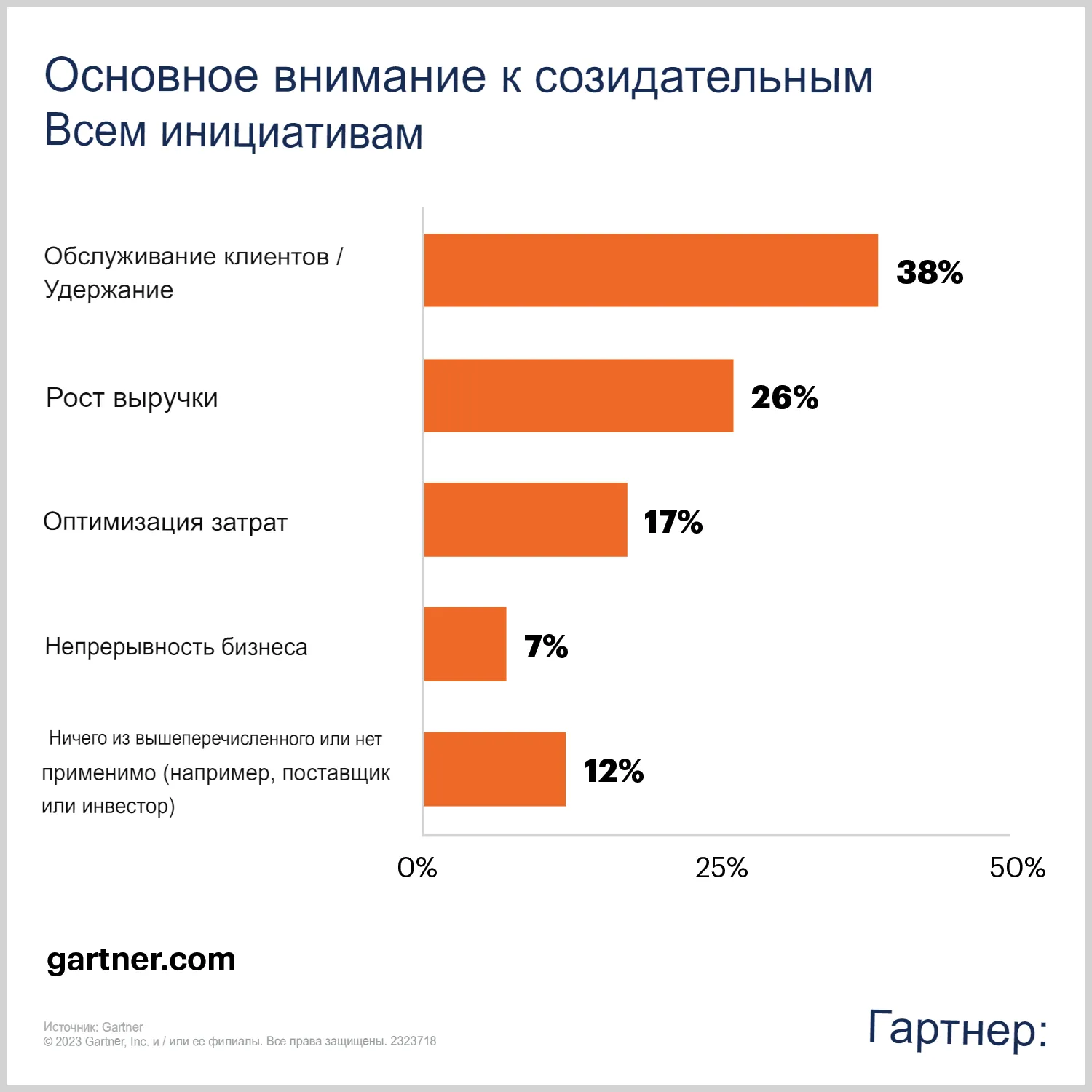 В недавнем опросе на вебинаре Gartner, в котором приняли участие более 2500 руководителей, 38% указали, что качество обслуживания клиентов и удержание их является основной целью их инвестиций в генеративный ИИ. За этим последовал рост выручки (26%), оптимизация затрат (17%) и непрерывность бизнеса (7%).