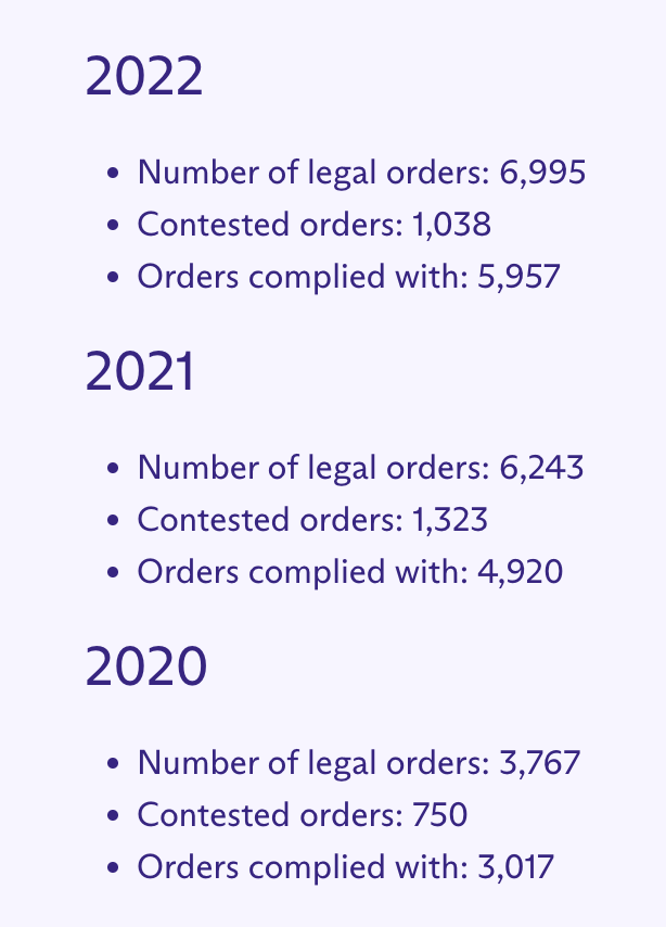 В 2022 году “выполнено” почти 6000 запросов на передачу данных