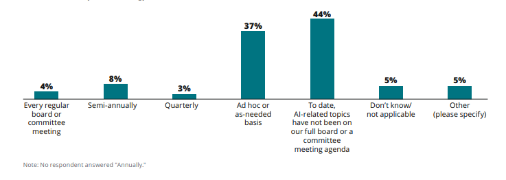 Опишите, как часто темы, связанные с ИИ, включаются в повестку дня заседаний полного состава совета директоров или комитета(ов) совета директоров, отвечающего(их) за надзор. [Выберите все, что применимо] (73 ответа)