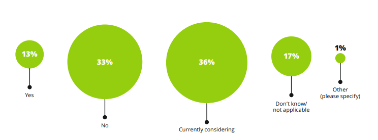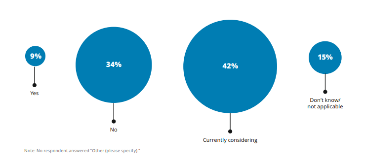 - 57% крупных и 29% средних компаний сообщили, что в настоящее время рассматривают такую возможность.