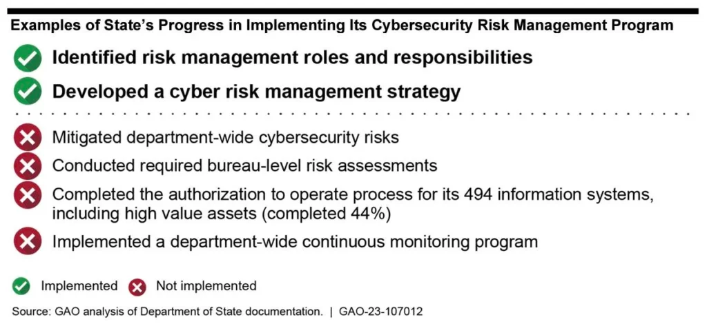 «Защита информации и систем, которые поддерживают миссию государства, имеет решающее значение для способности департамента эффективно управлять своими рисками в области кибербезопасности», — заявила GAO, отметив, что прогресса, достигнутого в последние годы, было недостаточно, чтобы привести Госдепартамент в форму.