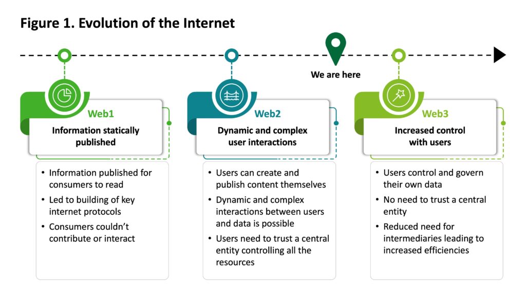 Web3 представляет собой следующую эволюцию Интернета. Это может предложить пользователям возможность владеть своим опытом, создавать новые возможности для клиентов и контрагентов и позволить им и организациям взаимодействовать без необходимости в доверии. Это связано с тем, что основные конструкции Web37 — криптографические ценные бумаги с поддержкой блокчейна, цифровые активы, поддерживаемые представлением информации без “доверия”, и смарт-контракты, облегчающие сложную обработку информации, — могут обеспечить необходимые гарантии и структуру доверия. Этот сдвиг парадигмы может создать возможности для новых экономик и бизнес-моделей, сократить число посредников и сделать существующие процессы более прозрачными и эффективными, а также позволить взаимодействовать с клиентами новыми и значимыми способами.