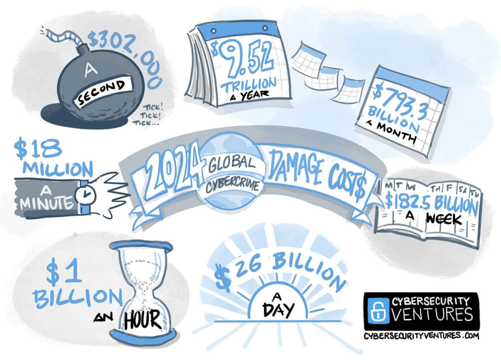 По прогнозам Cybersecurity Ventures, киберпреступность будет стоить миру 9,5 трлн долларов США в 2024 году. Если бы это было измерено как страна, то киберпреступность была бы третьей по величине экономикой в мире после США и Китая.