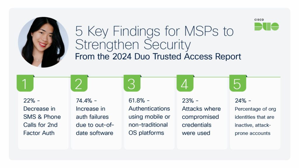 Отчет Duo Trusted Access за 2024 год содержит основанные на данных выводы о существующих и новых тенденциях IAM в 16 миллиардах проверок подлинности, 52 миллионах браузеров, 58 миллионах конечных точек и 21 миллионе уникальных телефонов.