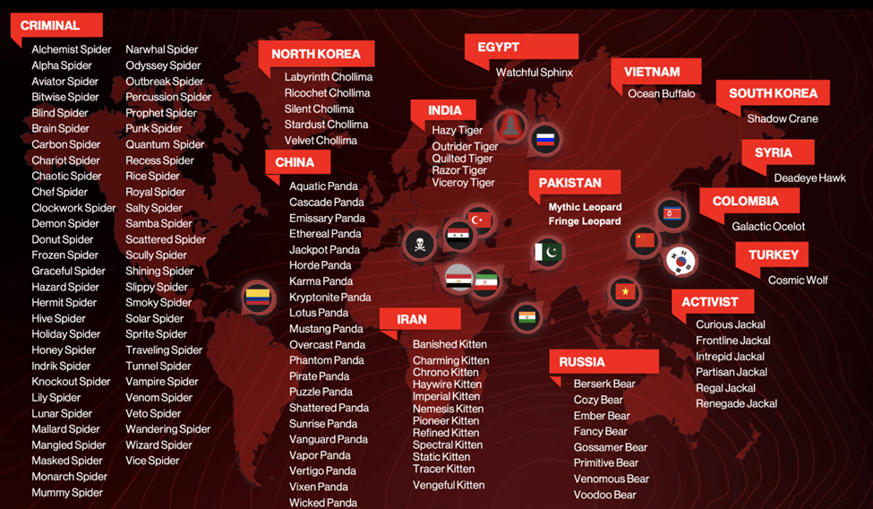 CrowdStrike в прошлом году обнаружила 34 новых имена злоумышленников, включая Watchful Sphinx из Египта, и отслеживает более 232 групп по всему миру. В режиме реального времени отслеживаются 130 активных кластеров вредоносной активности.