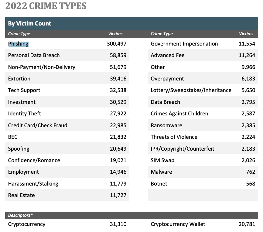 Фишинговые атаки были видом преступлений номер один, было зарегистрировано 300 497 жалоб. Общие потери из-за фишинговых атак превысили 10,3 миллиарда долларов.