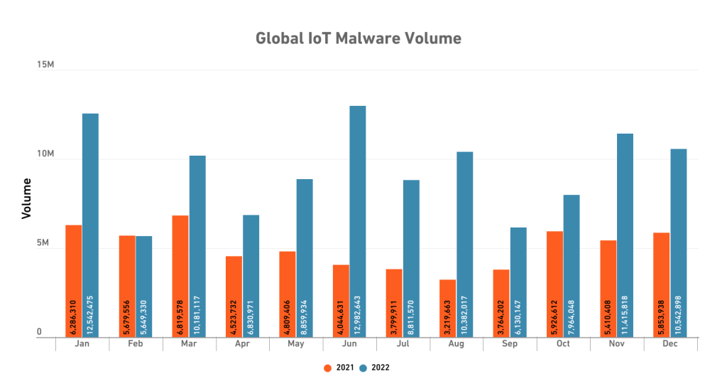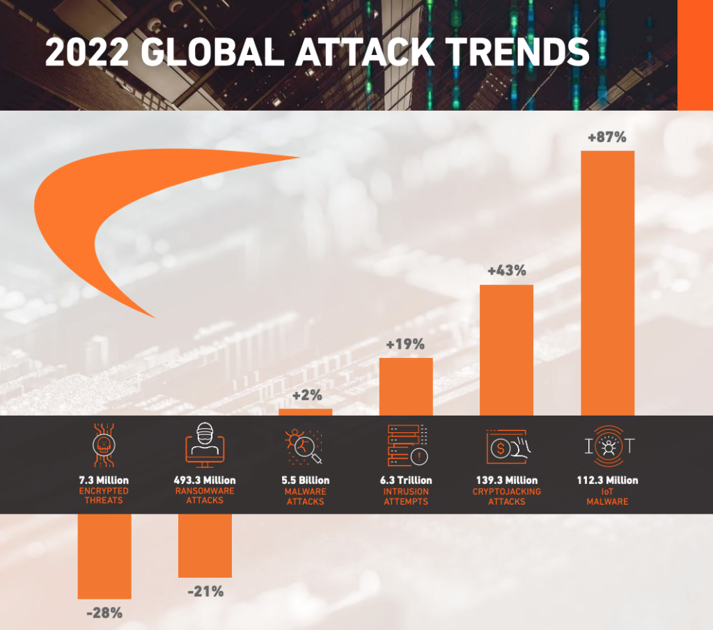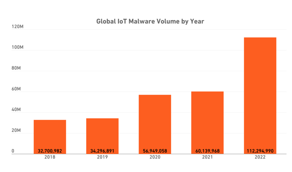 В 2022 году количество криптоджекингов выросло на 43%, в то время как количество вредоносных программ Интернета вещей выросло на ошеломляющие 87%.