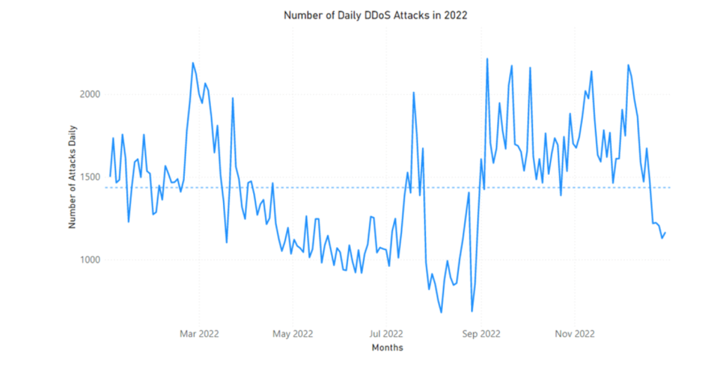 - Максимальное количество ежедневных атак составило 2215 22 сентября 2022 года.