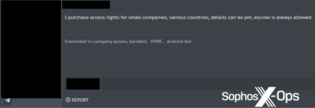 Рисунок 3: Киберпреступник, предлагающий купить доступ к небольшим компаниям