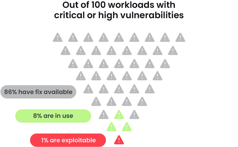 Итак, как вы противодействуете концепции кратковременных рабочих нагрузок, которые не соответствуют скорости облачных атак? Во-первых, расставьте приоритеты в устранении уязвимостей, используемых во время выполнения. Не оставляйте известные уязвимости открытыми и доступными для злоумышленников! В отчете указывается, что за последний год благодаря приоритизации среды выполнения количество используемых критических и высокоэффективных уязвимостей сократилось почти на 50%. Такая расстановка приоритетов в первую очередь снижает возможности злоумышленника, закрывая открытые двери. Исправьте то, что наиболее важно в среде вашей организации, а не то, что другие могут счесть наиболее важным.