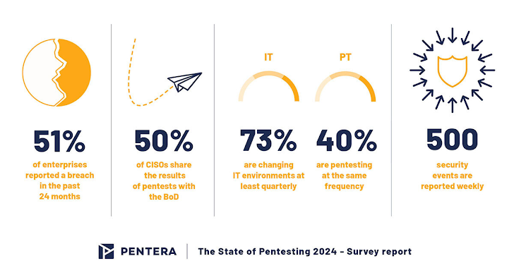 Обзор состояния Pentesting за 2024 год, проведенный компанией Pentera, подчеркивает критический момент для кибербезопасности: поскольку угрозы продолжают развиваться, многие решения безопасности не в состоянии их смягчить, что требует от CISO более последовательной проверки безопасности своей инфраструктуры.