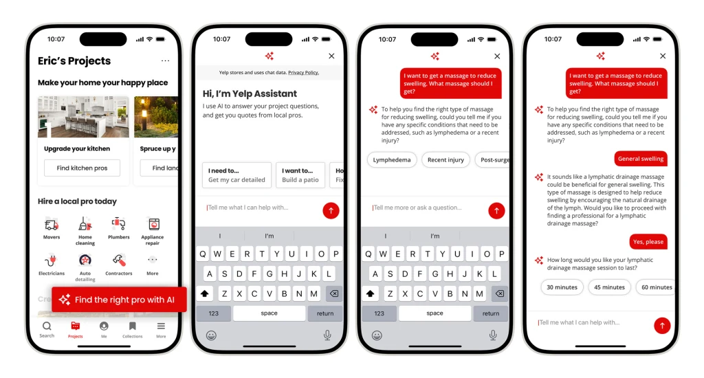 Помимо видеообзоров, Yelp также запустила обновление своих инструментов на базе ИИ, помогающих потребителям находить и нанимать специалистов для проектов по дому. ИИ-бот Yelp Assistant позволяет пользователям задавать запросы на естественном языке и собирает дополнительную информацию, чтобы найти подходящих специалистов. Более половины бизнеса Yelp теперь приходится на сервисы, и приложение предлагает различные виды домашних проектов на специальной вкладке. ИИ позволит давать более персонализированные рекомендации.