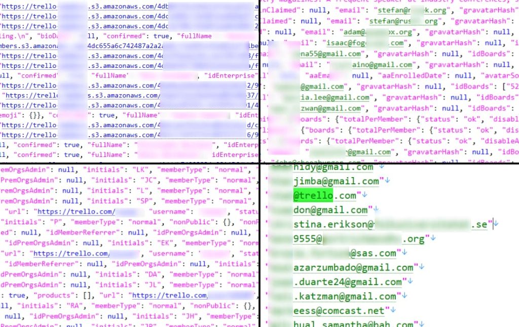 “У Trello была открытая конечная точка API, которая позволяет любому пользователю, не прошедшему проверку подлинности, сопоставить адрес электронной почты с учетной записью Trello. Изначально я собирался отправлять конечным пользователям электронные письма только из баз данных ‘com’ (OGU, RF, Breached и т.д.), Но я просто решил продолжать работать с электронными письмами, пока мне не надоест. Эта база данных очень полезна для doxing, поиска вложенных адресов электронной почты, соответствующих полным именам, и псевдонимов, соответствующих личным адресам электронной почты ”, сказал хакер.