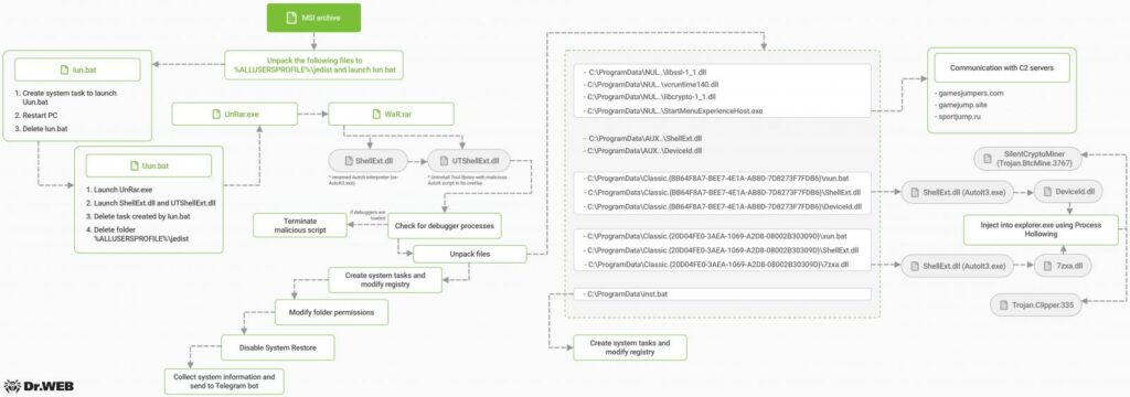 По данным компании по кибербезопасности Dr. Web, кампания использует пиратское офисное программное обеспечение, игровые читы и взломы и даже автоматизированных торговых ботов, чтобы обманом заставить пользователей загружать вредоносные файлы.